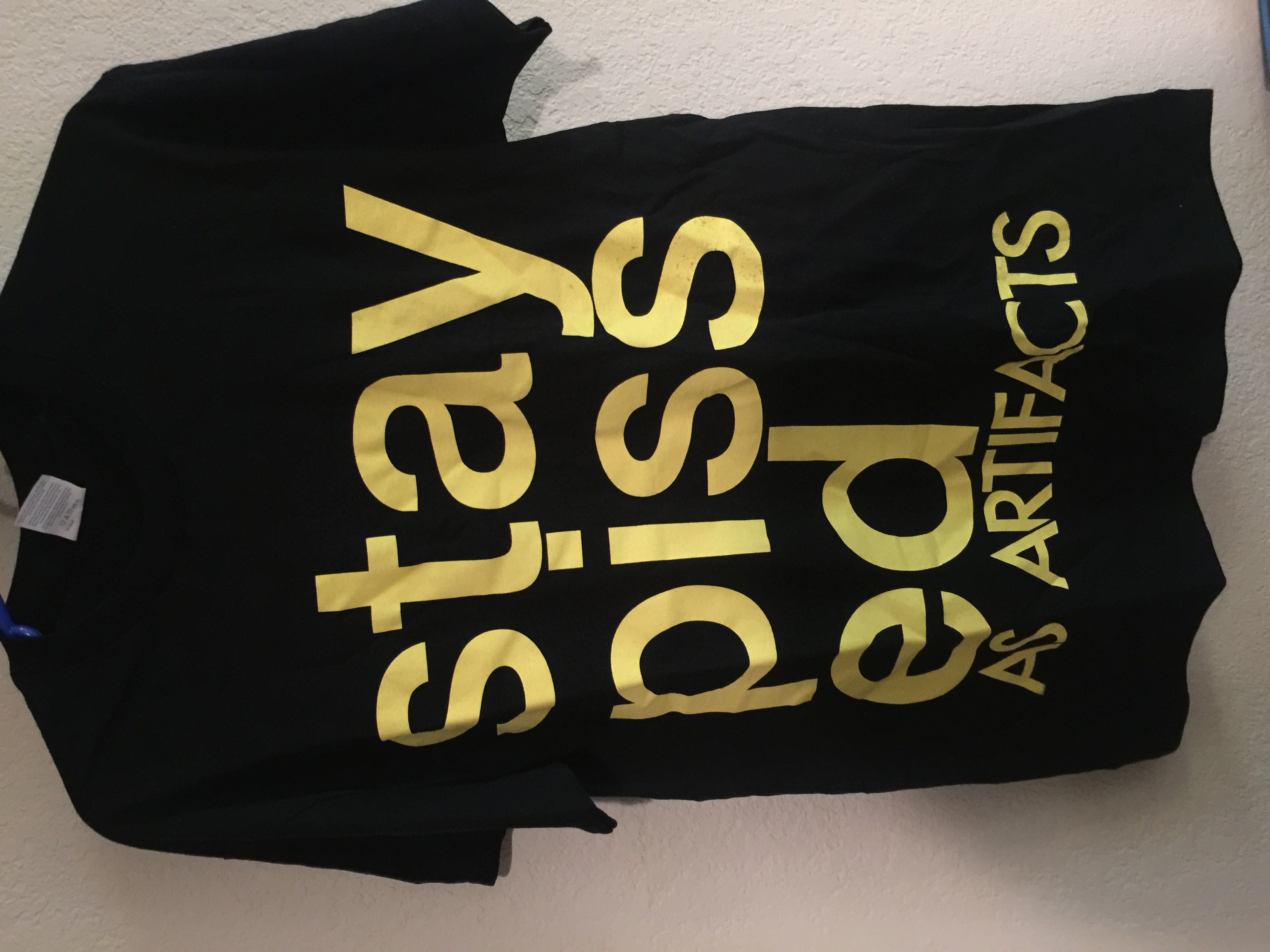 A fan favorite! Large yellow print on a black tee shirt with "Stay Pissed" and the band logo on the front.